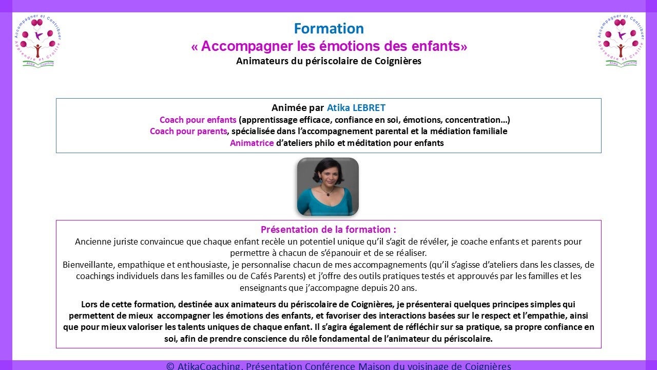 Ou qu'il s'agisse d'offrir aux enseignants et animateurs du périscolaire des formations pour leur donner des outils concrets basés sur les neurosciences pour faciliter leur accompagnement des enfants et redonner du sens à leur mission.